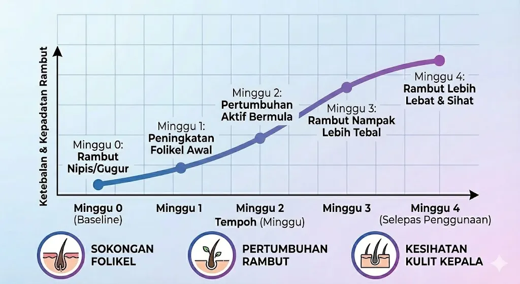 | Minggu 1 | Rambut & kulit kepala rasa lebih selesa |